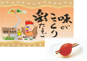 ★大人気商品!!!国産 こだわり生産!!★ 商品名: 味がこっくり 彩たまご(6個入) 宅配価格:267円(税別) 健康な鶏から生まれた卵。炭焼場でとれる樹液(木酢)、海藻、天然 貝化石、乳酸菌などを配合した特殊飼料を鶏に与えて生まれた卵です。 特徴: 甘味が強くコクがある。生臭さがない。 |